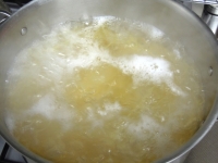 - 沸騰した湯に塩を入れ、パスタを表示時間茹でます。
