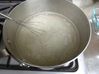- 鍋に水と粉寒天を入れ、火をつけます。混ぜながら寒天を溶かします。
