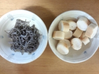 - 鍋に、だし汁と酒大さじ1を入れ煮立たせる。