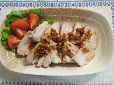 今回はタレをかけましたが、タレを少し多めに作って漬け込んでも美味しいです。味のしみ込んだ煮豚は日持ち(冷蔵庫で2週間位)もするし、色んな料理にアレンジが出来ます。