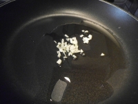 - 鍋にオリーブオイルを入れニンニクを炒める。