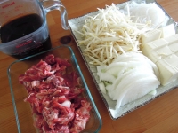 - 材料を全て鍋に入れ、割り下を加えて蓋をして煮るだけ。