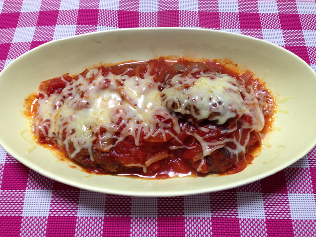 予め、焼いて冷凍保存しておいたハンバーグを使っていつものハンバーグをちょっと贅沢にしたお子さんにも好評のハンバーグです。