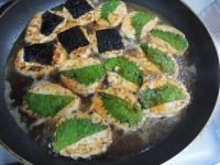 - 両面が焼き色が付いたつくねは一度バットに上げておきます。中まで火が通らなくても大丈夫です。 全て焼き終わったらフライパンに戻し、タレの材料(水、醤油、みりん)を入れて煮詰めます。