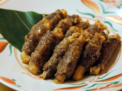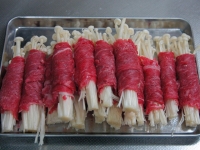 高価な和牛をお腹一杯食べたくて、えのきを巻いてボリュームアップしてみました。