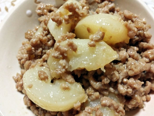 柔らかくてトロトロのかぶに甘辛い挽き肉あんかけが絡んでいて優しいお味です♪