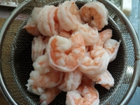 - 海老がオレンジ色になり火が通ったらザルにあけて冷ましておきます。