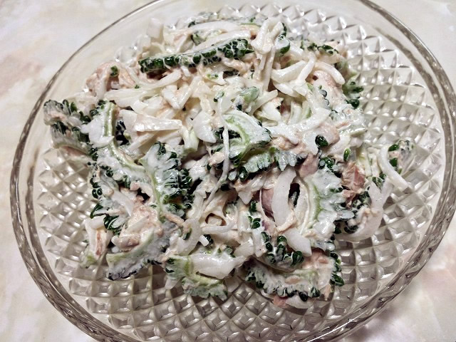 ゴーヤの苦味と新玉葱の辛味が美味しいサラダです。