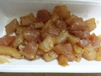 - ビントロは1cm角に切り、☆に漬け込みます。