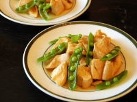 鶏胸肉とスナップえんどうの柚子こしょう炒め