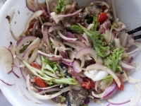 - 紫たまねぎはスライスして、辛味を取るため水に15分ほどさらします。