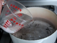 - 厚手の鍋の深さ半分の量の水を沸騰させ、火を止めて1カップの水を加えます。