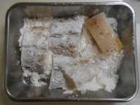 - 鰆は1切れを3等分に切り酒大1、塩こしょうで下味を付け10分おく。玉ねぎは薄切り、にんじんは千切り、ピーマンは種とヘタを除き薄く輪切りにする。