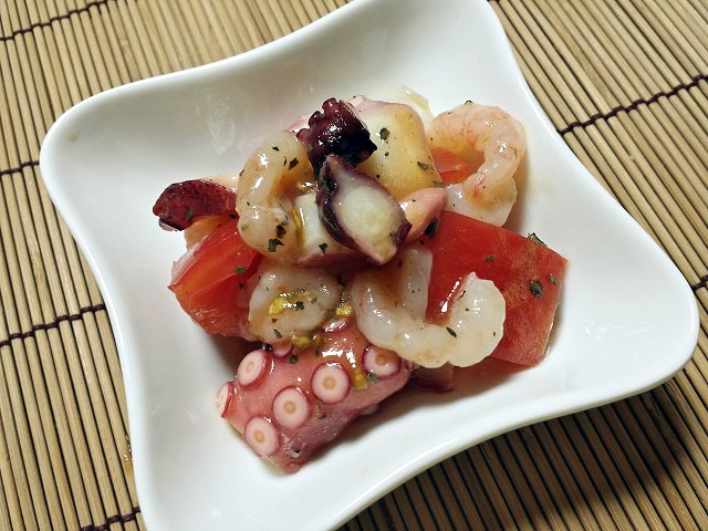 ポン酢かサッパリ♪タコと甘エビによく合います。