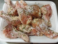 - 鶏手羽元は全体に★をまぶします。