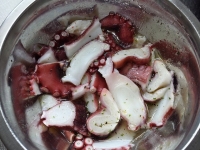 - タコは薄くスライスして★に漬け込みます。(可能であれば1時間程)