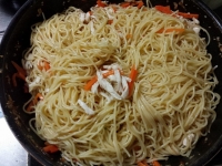 鶏ささみと人参の海老オイルパスタ