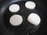 - 餅はぬるま湯にしばらく浸し、餅の厚みを半分に包丁で切る。 パプリカは5㎜角に切り、長ネギは斜めスライスに切って置く。 ツナは軽くオイルを切る。
