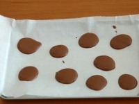 - オーブンシートを敷いた紙の上にチョコレートをスプーン一さじずつ落としていきます。