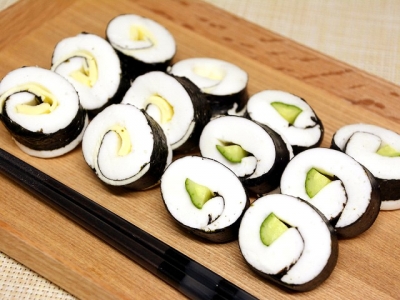 見た目は海苔巻きのようですが、実はお米ではなくはんぺんでできた海苔巻きです。
