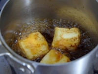 - フライパンに2cmほど油をしき、豆腐を揚げ焼きします。