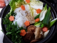 - 鍋に牡蠣以外の材料を食べやすい大きさに切って並べます。