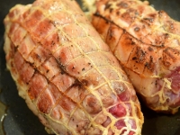 - (下準備) 豚肉は冷蔵庫から出して常温にしておきます。 豚肉にしっかり塩コショウし、さらに豚肉をタコ糸で縛って型崩れを防ぎます。 フライパンで表面をこんがり焼きます。