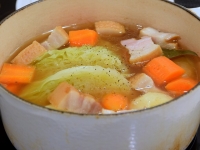 - 鍋に、塩こしょう以外の全ての材料を入れ、火にかけます。20~30分、野菜が柔らかくなるまで煮込みます。