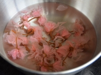 - 桜の塩漬けを洗って水に漬けて塩抜きしておきます。